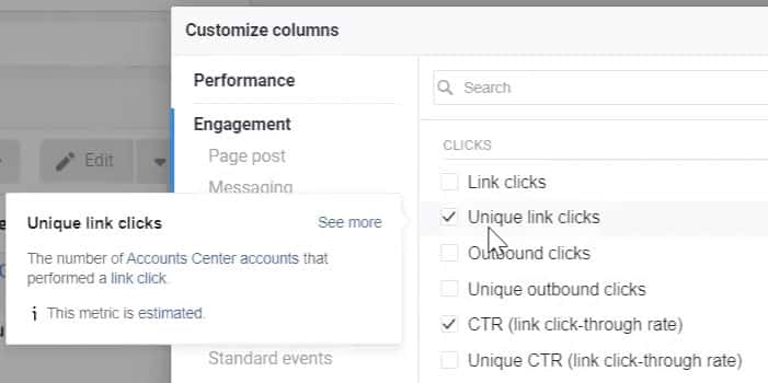 בקמפיין טראפיק נוסיף מדד שנקרא CTR ו-Unique link clicks.