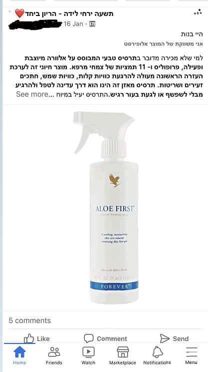 דוגמה למהלך יזום וחיובי של אחת מבעלות העסקים ב-FOREVER, אשר העלתה פוסט המציג לראווה את המוצר והוסיפה גם מינוח משלה בתור שאלה לקהל הרחב.